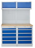 The cabinets are topped with a hard wearing 38mm multiplex plywood or Stainless Steel worktop, perforated tool hook panels and a bank of wall cabinets. A full range of took hook accessories are available to maximise your organisation and productivity.