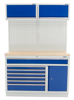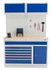 The 7 drawer 1 door cabinet is supplied fully assembled with an internal central locking system for extra security. The cabinet is topped with either a hard wearing 38mm multiplex plywood or 38mm stainless steel worktop, perforated tool hook panels and a bank of wall cabinets.