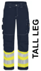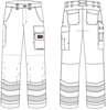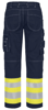 Non-Metal and Inherent Flame Retardant Hi-Vis trousers in a light fabric with a comfortable feel and good tear resistance. Side pockets. Back pockets with pocket flaps. Cargo pocket with flap, concealed D-ring and mobile phone pocket. Ruler pocket and concealed knife button with loop. Shaped knees with adjustable inside kneepad pockets. Contrast stitching.