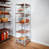 Complementing the popular trend for Industrial, modern look interiors, this range is constructed from zinc plated steel and walnut effect MFC shelves and is completely free standing.