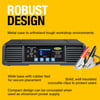 100A smart battery charger with multiple charge rate settings. A complete battery support unit, suitable for 12V and 24V vehicles with mixed battery types including Lithium and START/STOP. Slimline & light, ideal for intensive use with fleets of mixed vehicles, in garages and workshops for diagnostic and remapping purposes, and showroom environments. With heavy-duty removable clamps.