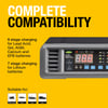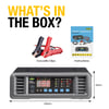 With up to 20A smart charging, this unit provides crucial battery support for diagnostics, showroom power, or workshop use. Its variable charging rates (2A/10A/20A) allow you to quickly recharge batteries or use a slow charge for maintenance. The 9-stage charging process works for lead acid, AGM, calcium, and EFB batteries, while the 7-stage lithium process ensures safe and efficient charging.