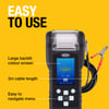 This multi-function unit can test the battery, alternator, starter and vehicle earth via its intuitive graphical interface. Results can then be printed using the built-in thermal printer, and viewed on other devices via the removable SD card or through the printed QR code.