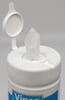 This compact and handy sized cannister of wipes contains 200 optimum size (18x20cm) wipes. The wipe material is 100% polypropylene and white in colour. Not only is the wipe very durable and able to withstand rough surface wiping, it is also soft to touch making an excellent multi use wipe for both hands and surfaces.