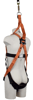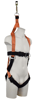 The harness is derived from the two-point harness it has a double barred deering on the back first extra security it has a life ring around the middle which is connected to the front d-ring the product has a triangles drop that is attached to the shoulders for rescue the harness is fully adjustable with chest adjustment and leg adjustments.