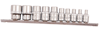 • CONTENTS: The set includes 5 x 6mm (1/4") square drives (E4, E5, E6, E7, E8) and 5 x 9.5mm (3/8") square drives (E10, E12, E14, E16, E18) with a storage rail