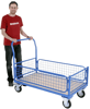 Tubular steel platform trolley with ply deck and removable, half-height mesh panels. Available with a choice of standard or swivel castors designed to be pushed or pulled or working better on cracked / uneven floors.
