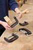 This robust set of four G-Clamps have a malleable cast iron frame and a powder coated finish for durability. The swivel shoe helps clamp on uneven surfaces. There is a silver plated square thread screw, tommy bar handle and swivel shoe