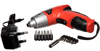 ACCESSORIES INCLUDED: The contents include a 12-piece accessory kit consisting of Slotted, Square, Phillips, and Pozi screwdriver bits, as well as a magnetic bit holder, adaptor, and instruction manual.