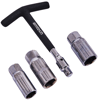 CONTENTS: This handy T-bar spark plug wrench set contains a 3/8" swivel drive, 3 x 3/"8 drive spark plug sockets (16mm, 18mm and 21mm) and a T-bar handle for improved leverage