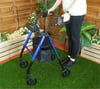 This lightweight yet durable rollator is constructed from a mix of steel and aluminium and has 6" solid puncture proof wheels. The Rollator has height adjustable ergonomic handles with brakes that push down to lock into a stationary position. They are ideal for users with limited grip power. Height adjustment is achieved via arthritis friendly fixings. The rollator legs can also be adjusted in height using a simple push pin mechanism. The rollator has an easy-to-use folding mechanism for quick convenient storage. The backrest does not need to be removed; it simply flips back when folding. There is a fabric padded flip up seat for comfort when stationary. A hidden under seat storage bag is handy for carrying small items of shopping and keeping personal items safe and dry. Maximum user weight limit is 136kg (21 stones).