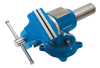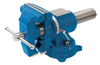 Rotating 360° vice head with 125mm (5") standard parallel serrated jaws, pipe jaws and V-jaws. 3-point pipe jaws ideal for round objects and V-jaws ideal for square objects and small parts. 360° locking rotating base with horizontal and angle graduations plus built-in anvil. Powder-coated and chrome-plated for corrosion resistance. Spherroidal graphite iron nut, hardened and tempered screw thread for durability. Weight 17.5kg.