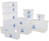 Multi-purpose plastic storage boxes with clip on lids, Manufactured in the UK. Ideal for use in the office, storeroom, garage and around the home.
