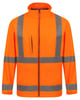 The Hi-Vis Softshell Jacket "Turku" features two 5 cm wide reflective strips encircling the body and over the shoulders for enhanced visibility.