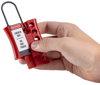 The S442 plastic, lockout tagout safety hasp with 3mm shackle offers a reliable solution for organizations who need to secure electrical panel enclosures with small isolation points. This nonconductive, sliding safety hasp is perfect for lockout by up to 4 workers at each lockout point.