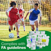 The Football & Rugby First Aid Kit Refill is a first aid kit refill designed to treat injuries that might happen on the playing field. The kit provides you with essential first aid supplies to treat common football and rugby injuries, like bandages, sterile wound dressings, sterile eyewash and water spray bottles.
