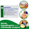 • Individually wrapped sterile blue plasters with detectable metal strip