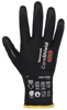 Very lightweight, 18 gg fibreglass-free and food certified level A nitrile foam-coated black cut resistant gloves