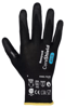 18 gg cut protection gloves with seamlessly knitted recycled polyester, PE & steel fibre liner, nitrile micro-foam coating and thumb reinforcement, cut level E/A5, black with color-coding