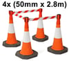 Set of 4 JSP Dominator Cones with 4 Cone Toppers Retractable Barrier Warning Red-White Tape - [IH-CONESET4] - (MP)