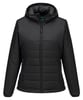 Stylish, padded and insulated, women's hooded baffle jacket which is ideal for over branding with your corporate logo. The water-resistant finish will keep you dry with light rainfall.