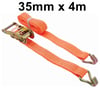 3 Tonne Ratchet Strap with 4m x 35mm wide polyester webbing, with a claw hook at each end. Designed for industrial use which makes it perfect for securing vehicle loads, marquees, shelter construction etc. The medium duty claw hook ratchet lashing is a two part assembly. Certified to EN-12195-2.